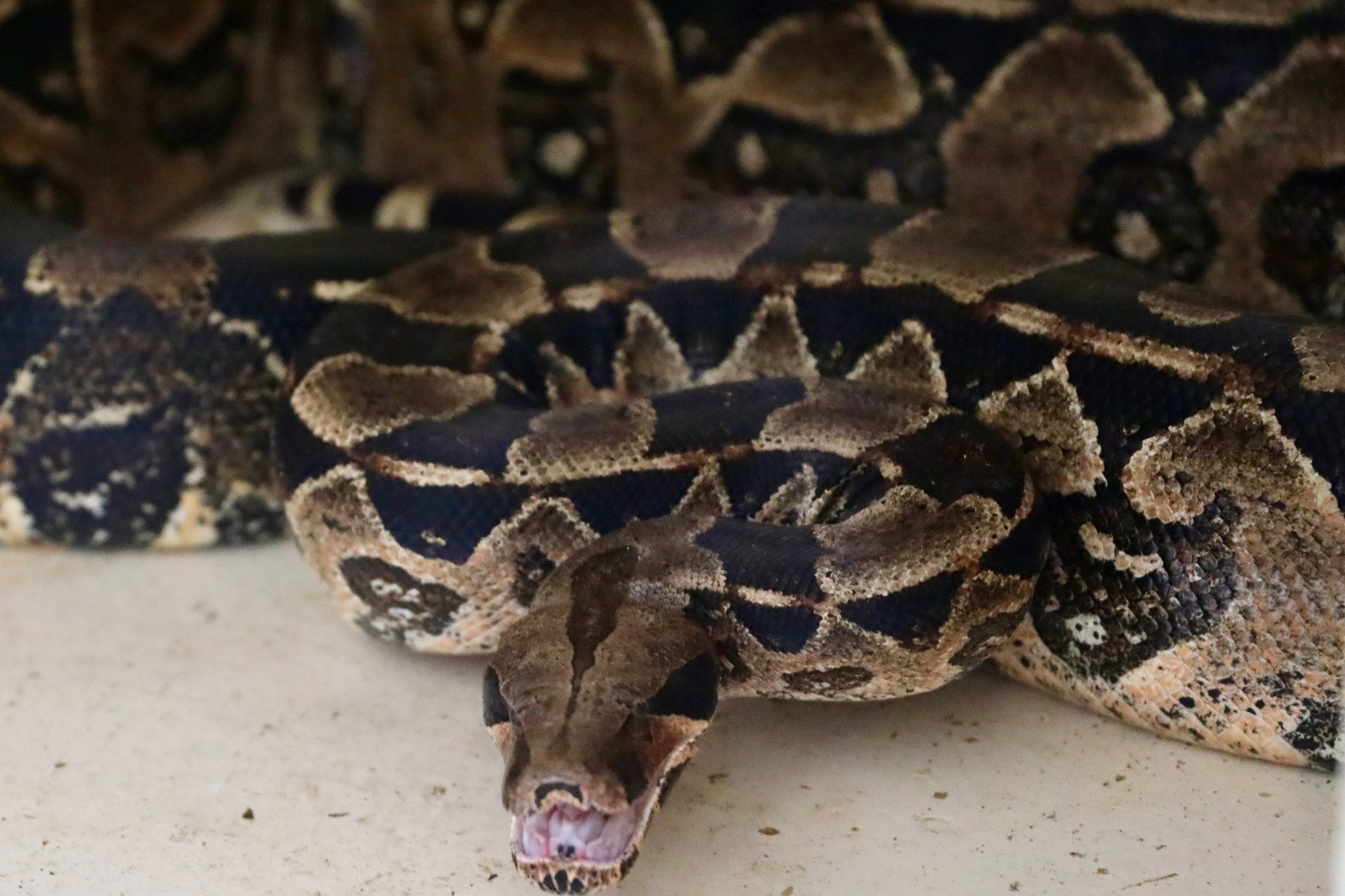 A médica veterinária do CETAS, Joseana Araujo, explica que a jiboia é a principal espécie de serpente resgatada em áreas urbanas. “Nos últimos anos, temos observado um aumento de ocorrências na cidade, em grande parte devido ao desmatamento, que faz com que elas percam o habitat natural e procurem novos locais para se abrigar. Elas aparecem bastante no período quente, porém é no período de chuvas que há maior frequência de registros, já que os alagamentos expulsam os animais de seus abrigos”, relatou.